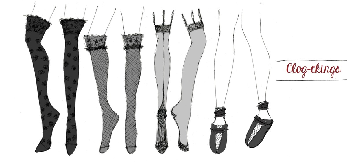 This is the concept of Clog-ckings: a combination of functionality, practicality and comfort, necessary elements of a working shoe, with the appeal of a sexy woman. The background inspiration is made of gestures, icons and pin up style: stockings, garters and sensual underwear.